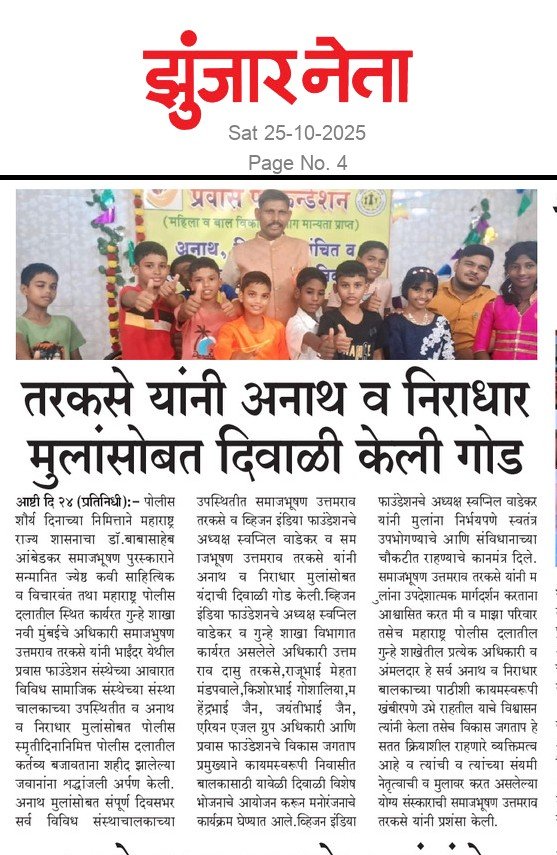 Pravas Foundation is a non-profit, non-political organization established in India in 2009 and fully operating currently in Mumbai, Palghar, Thane and slowly we are expanding our hands in other parts of Maharashtra, we are working with underprivileged children, Women & their families, regardless of their caste, creed or religion.