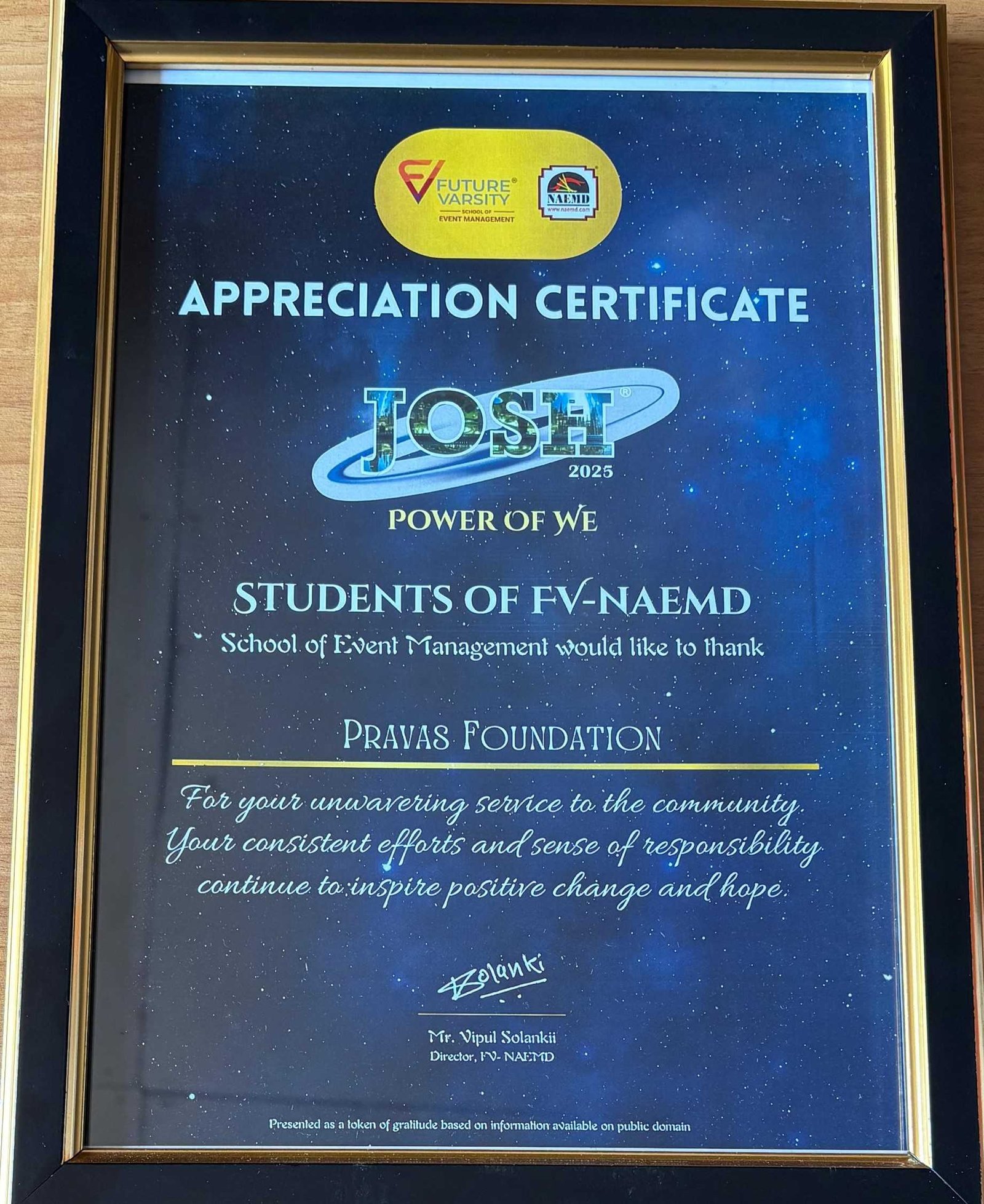Appreciation Certificate - JOSH