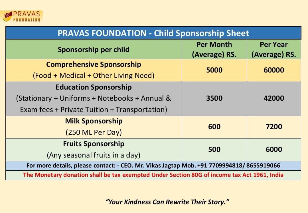 Account Name: - PRAVAS FOUNDATION Bank Name: - State Bank of India Account Number: - 38199696019 Branch: - Kandivali (East), Mumbai IFSC Code: - SBIN0010899 Account Mode- Current